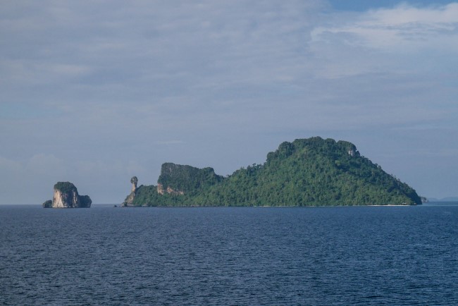 吃过早餐后就差不多抵达甲米了,看到远处长得像一只鸡/恐龙的岛屿吗?那就是鼎鼎大名的 Chicken Island 了。若果想要到甲米海滩外的岛屿游玩,你可以选择参与丽星邮轮特备的环岛旅游团。