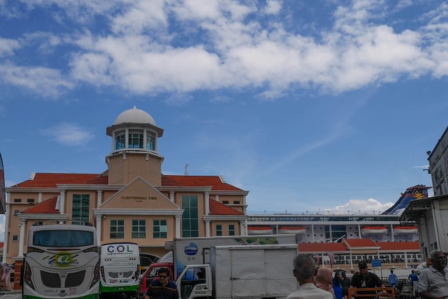 最后一天中午,超级天秤星号再次回到槟城母港,我们再不愿意也只能不舍得离开了。若有大型行李可在早上10点前把行李放到房间门口,船员会帮你把行李拿下邮轮。离开邮轮后只需到行李集合处找自己的行李就可以了,非常方便。
