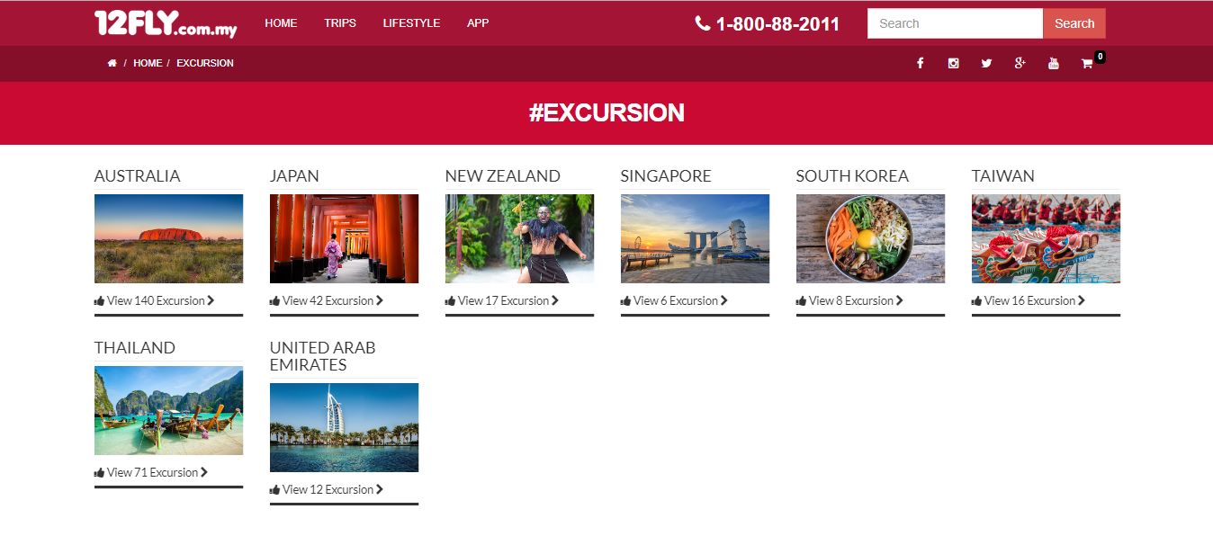 除了多元化的地接配套,12FLY也为热爱自由行的旅人们贴心设计了200条以上的短途游路线,包括市区导览、户外探险、文化体验等,每一项均清楚列明细节如行程特色、集合地点、出发时间及相关条规,只要点击网站首页的“EXCURSION”一栏、便可从中选择你的旅游目的地,再一一细选你感兴趣的短途行程。