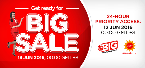 亚航会员 Big Shot 将可获得提前 24 小时于 2016 年 6 月 12 日的优先预定资格,唯会员必须拥有最少 500 积分才可优先订购机票(每张机票需使用最少 500 分+现金兑换)。