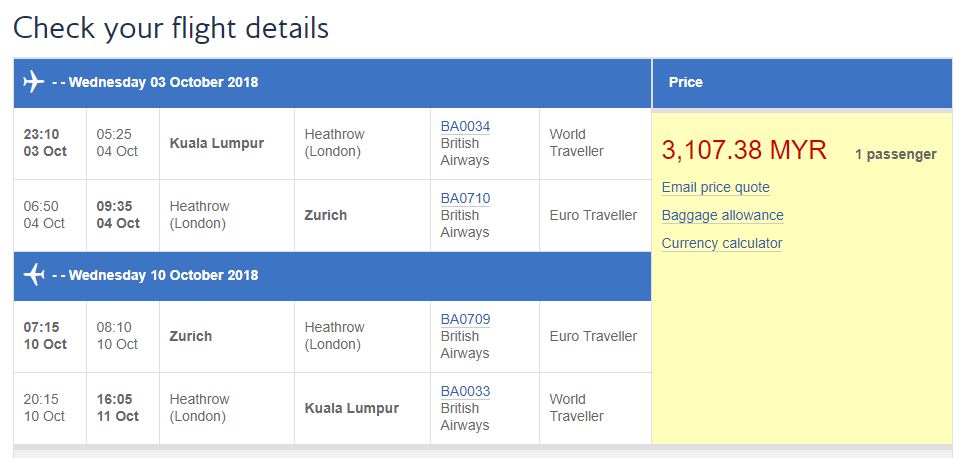 Zurich:RM2,580 (官网原价RM3,107)