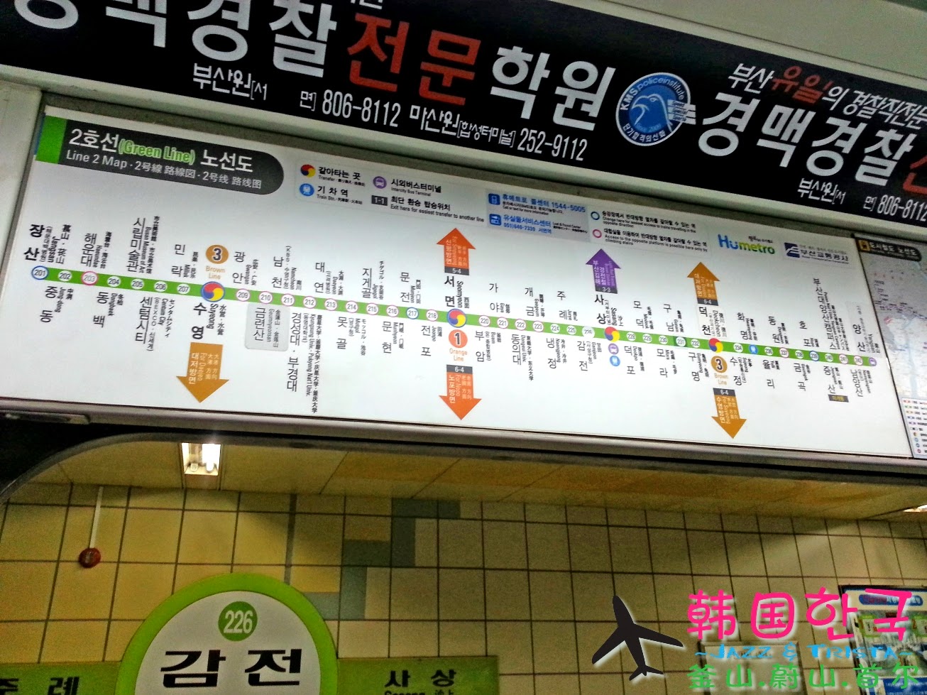 釜山地铁每一站同样有结合韩语、中文、日语和英文的指示牌
