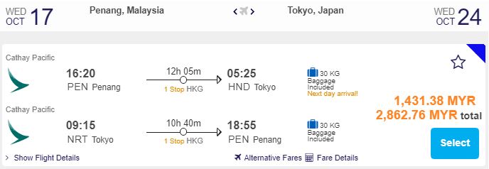 Penang飞东京,只需RM1,431.38(一人)