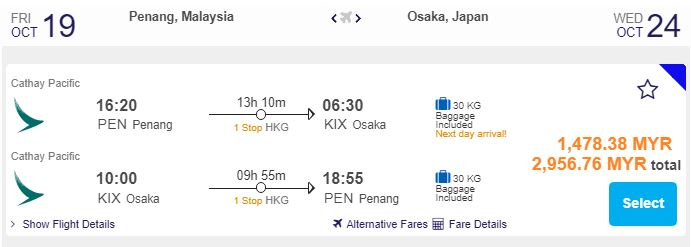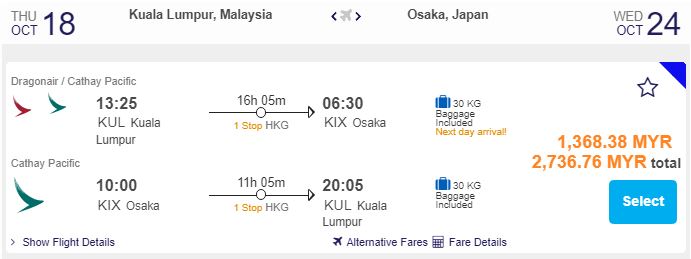 大阪Osaka:RM1,478 (官网原价RM1,506)
