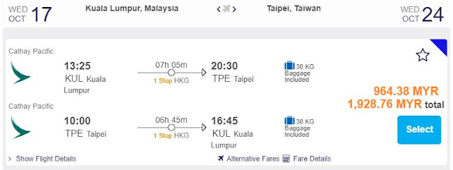 台北Taipei:RM964 (官网原价RM1,013)