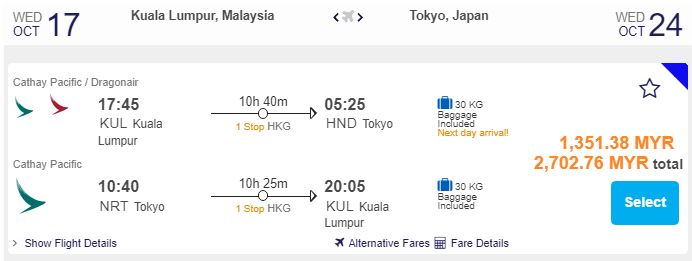 KL飞东京,只需RM1,351.38(一人)