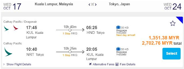 东京Tokyo:RM1,431 (官网原价RM1,461)