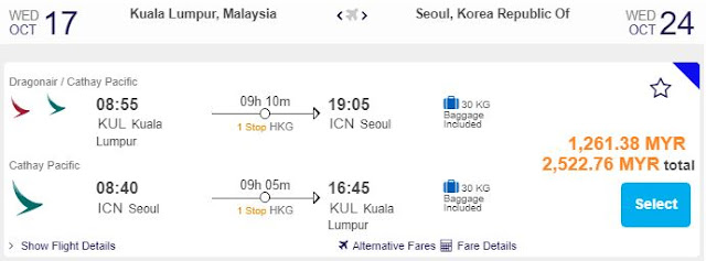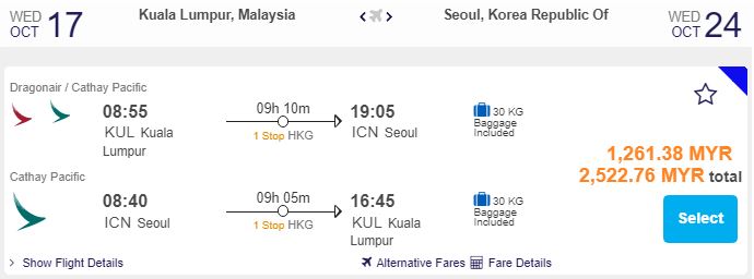 KL飞首尔,只需RM1,261.38(一人)