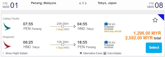 东京Tokyo:RM1,296 (官网原价RM1,378)