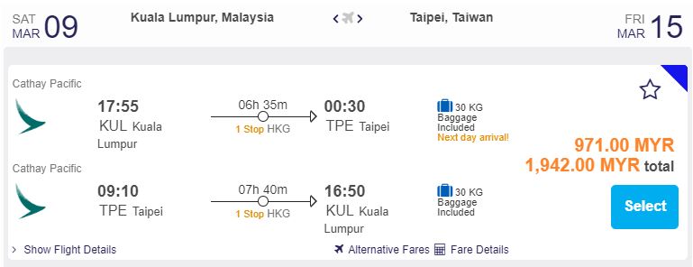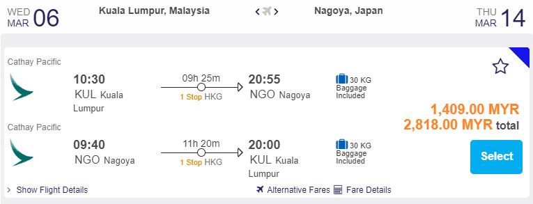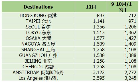 飞行日期:即日起至31-Mar 2019