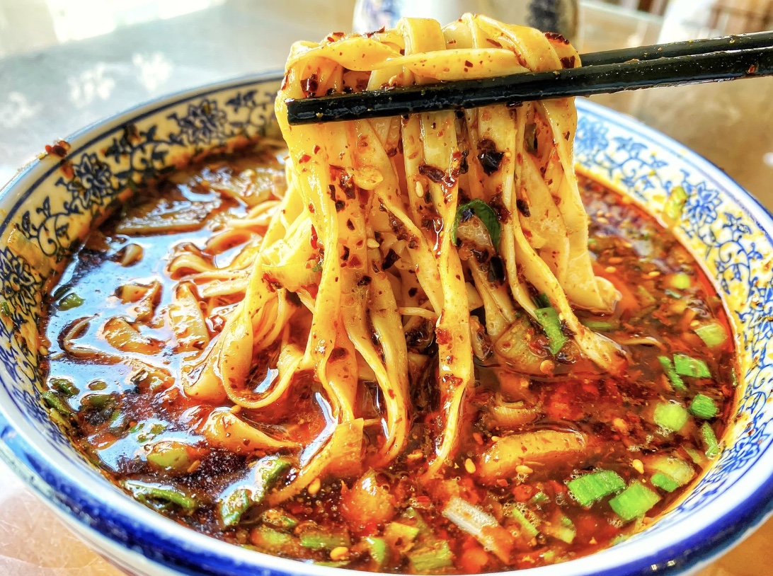 在中国,很多地方的宵夜摊都能见到一碗热气腾腾的兰州拉面。手工拉制的面条,筋道爽滑,加上清澈见底的汤底和几片牛肉,既解饿又提神。