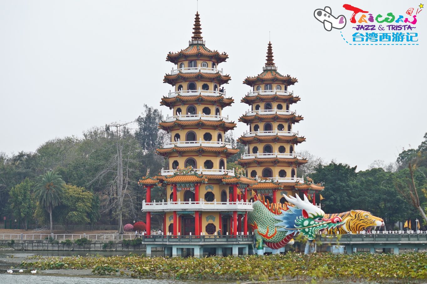 位于台湾高雄市北部的莲池潭(旧称莲花潭)西南边,是矗立于潭水之上的两座孪生阁楼。龙虎塔建于1976年,分为龙禅、虎禅两塔,塔身与岸边有九曲桥连通。塔高七层,采佛家七级浮屠之意。每层十二角,采黄墙、红柱、橘瓦,饱和的色彩,在阳光的照射下,掩映潭面,引人瞩目。进入塔内,你还可以看到里面的壁画,龙塔内画有中国的二十四孝子图和保生大帝事迹图。虎塔则画有孔门贤士和玉皇大帝三十六宫将图。