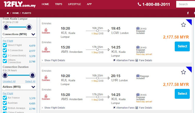 通过12fly.com.my预定Emirates机票更加便宜!! 便宜近5%啊!!