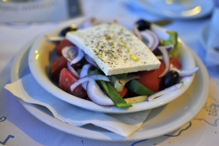 最具代表性的就是希腊沙拉(Greek Salad)——新鲜番茄、黄瓜、菲达芝士与橄榄油的完美组合。