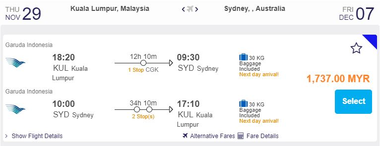 飞行日期:即日起至30-Dec 2018
