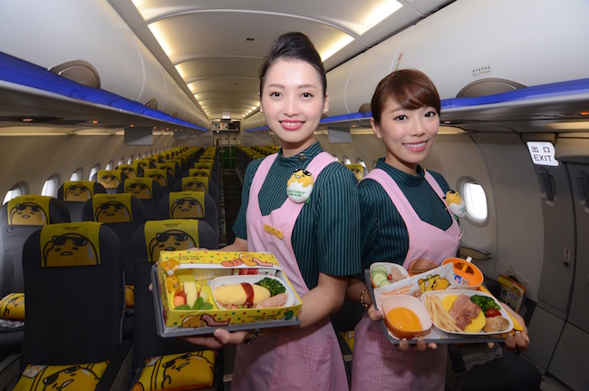 乘搭 BR196 从台北到成田,或者 BR195 从成田到台北的长荣航空班机,各种周边产品都有蛋黄哥的踪迹,您还可以购买特定的纪念品回家!