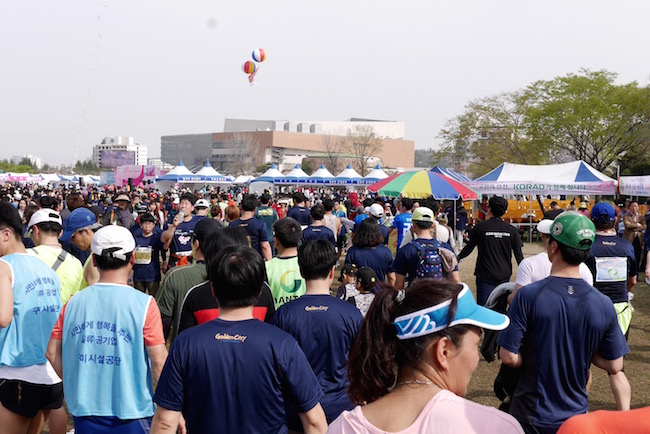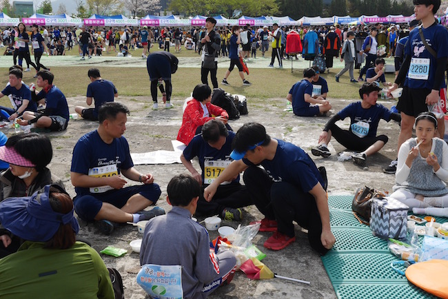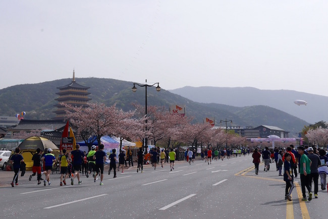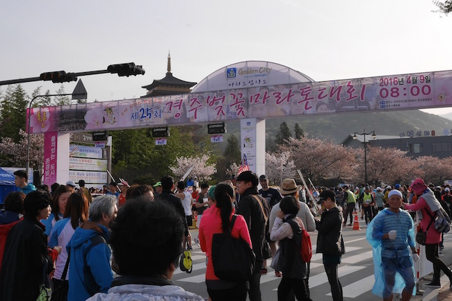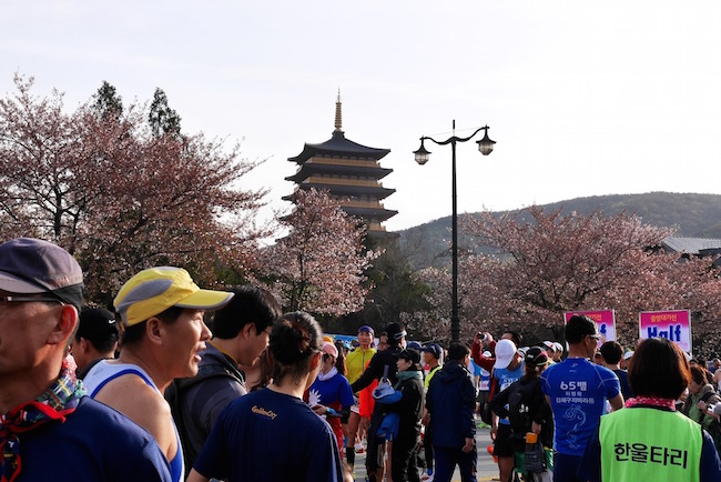 2016 年,庆州举办了第二十五届的樱花马拉松活动。今年的合作单位除了有庆州市政府及韩国观光公社,日本读卖新闻西部本社也是合作单位之一,所以现场可以看到很多来自日本的参与者。(照片来源:衣食住行)