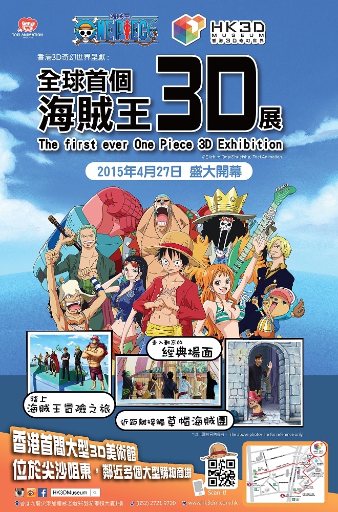 香港 3D 奇幻世界从 2015 年 4月 27 日起正式为您带来日本动画海贼王的特别展览空间,您可到现场感受动画中的画面和气氛,并且成为草帽海贼团的伙伴之一,一起见证寻找大秘宝 One Piece 的冒险旅程!