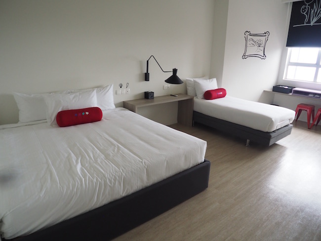 这里的房间都以宽敞大间为卖点,最小的房间就是照片里这间 Quads 房型,里面有两张双人大床,可以容纳四位大人!