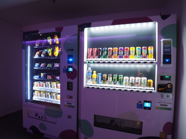 每一层楼的走廊还有准备了自动贩卖机,肚子饿可以随时买到轻便的零食或饮料来充饥。