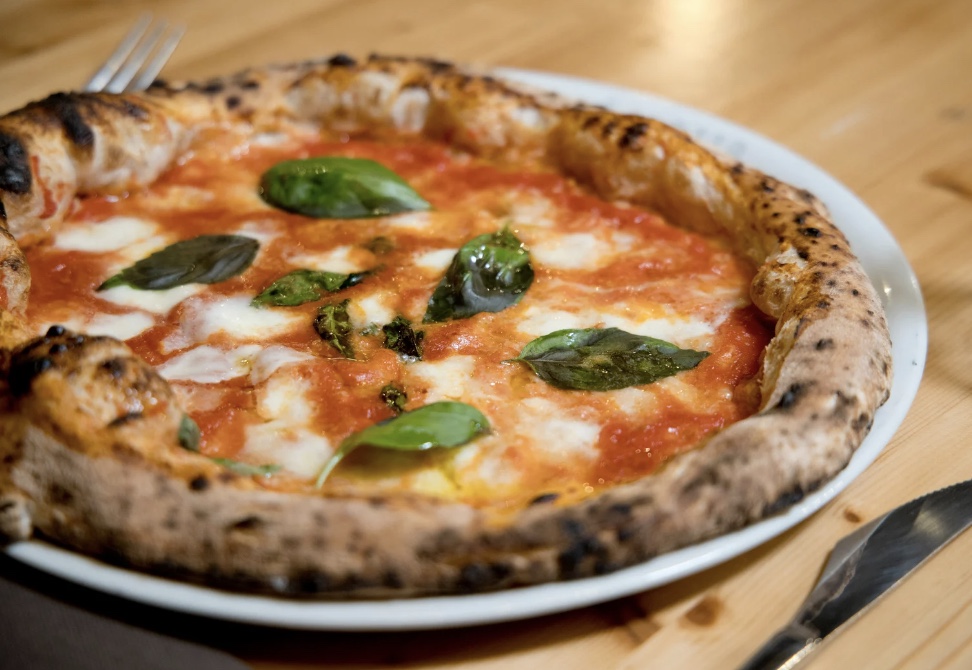 外层饼皮焦香酥脆、内部柔软,放进木柴炉烘烤几分钟后,就是最纯粹的意式风味。