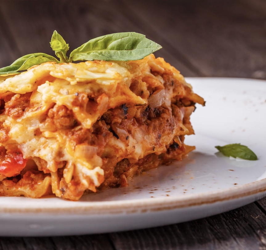 层层叠叠的面皮间夹着肉酱、白酱和起司,再烘烤至金黄酥香。