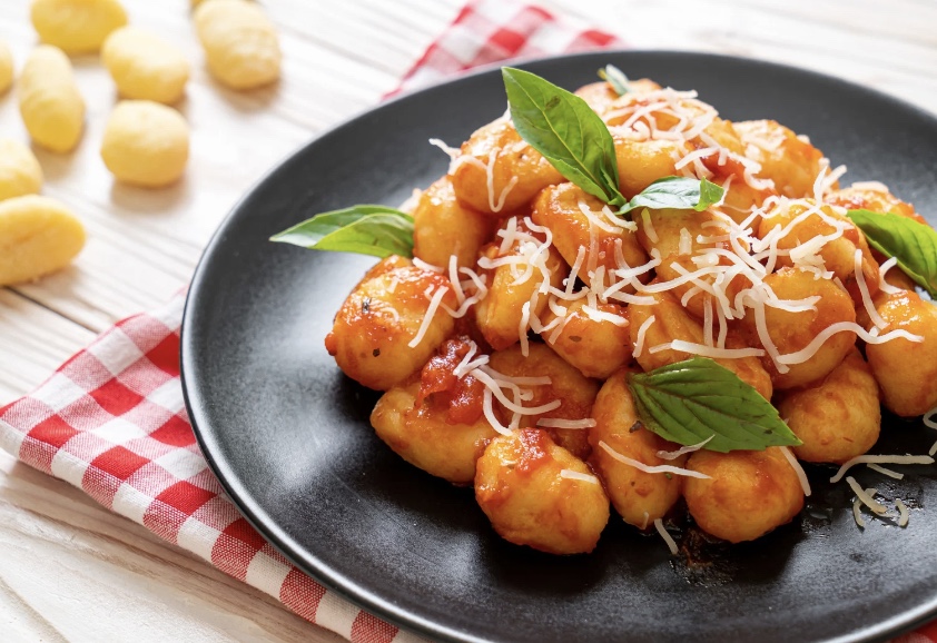 Gnocchi 用马铃薯、面粉与鸡蛋揉成小团,再煮熟搭配奶油或番茄酱。