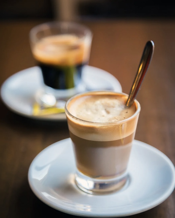 如果想更柔和一点,可以点 Macchiato(加少量奶泡的浓缩)或 Cappuccino(加奶泡与可可粉)。
