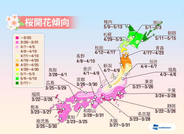 每年三月至五月期间迈入春季,日本多个地方陆续开满粉红色的樱花,吸引很多游客前往赏樱。2016 年的花开预告已经出来咯,您现在就可以开始计划赏樱行程了。