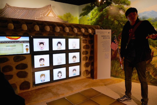 儒教最基本的教育就是尊师重道和孝顺,走进展览馆不久就有教导辨认亲戚关系的互动屏幕。