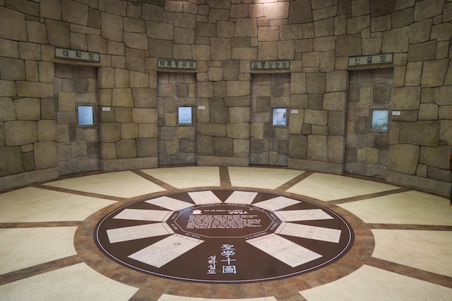 圣学十图,以破关闭门修炼的概念与访客互动。您必须先在关卡门前的屏幕上破解谜题后才能走进室内观看圣学十图的资讯。这种互动好玩的方式会让人更有兴趣去了解呢!