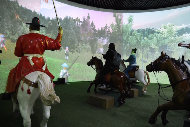 也有打战的模拟游戏,骑在马上与屏幕互动的游戏。