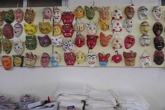 这些面具都是小孩子的手工作品。