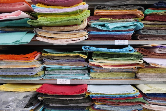 也可以染色或加入各种材料让韩纸变得五颜六色或附有花纹图案,这些纸除了可以用来书写,其他用处也很多。
