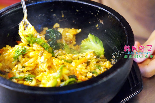 只是吃完烤肉和泡菜蛋之后,基本上已经七分饱,再硬啃这石锅拌饭,有点不能负荷啊~