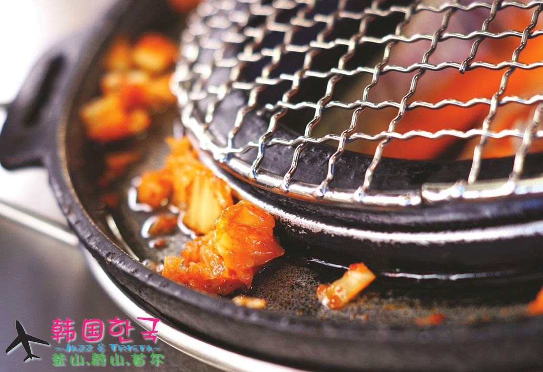 加入火炭之后,那个泡菜我们可以随意铺排在烤炉旁凹进去的部位
