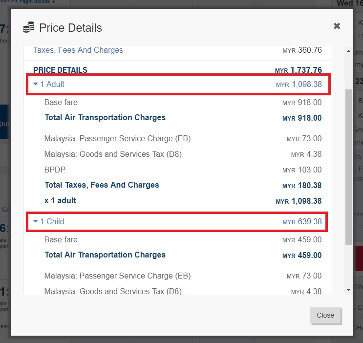 KLIA:RM1,548(Adult) ; RM793(Child)