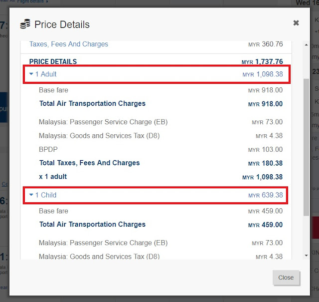 KLIA:RM1,469(Adult) ; RM889(Child)
