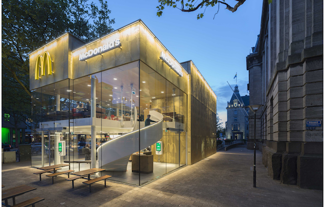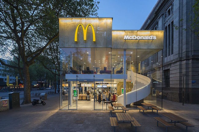 位于荷兰 Rotterdam Coolsingel 的这家麦当劳更是别树一格,两层楼的玻璃屋设计让店内接收自然光,顾客还可以看到窗外的树林风景,感觉超棒!除了玻璃屋设计,店里面还采用了白色螺旋梯,一整个感觉就像是高级餐厅了!是不是很想到这家麦当劳点一份 Big Mac 套餐呢?