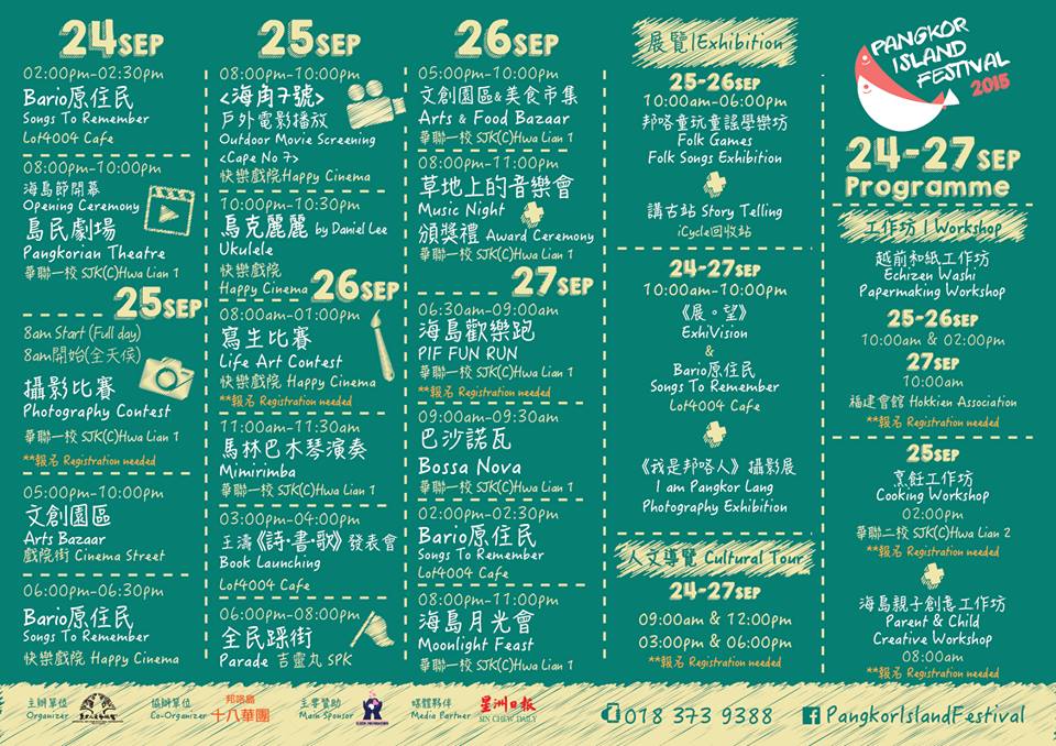 更多详情可查看官方面子书:www.facebook.com/pangkorislandfestival