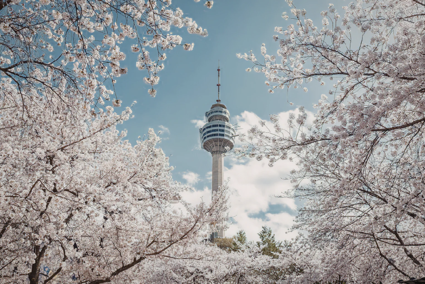 汝矣岛:韩国最具代表性的樱花大道,数千棵樱花沿汉江盛开。