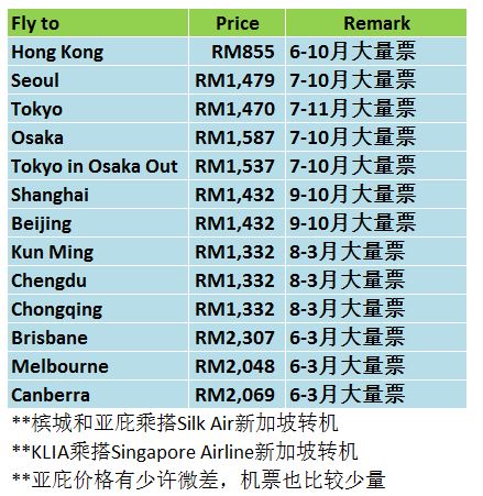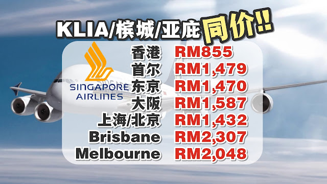 罕见看到Singapore Airlines促销,而且KL/槟城/亚庇出发,价格几乎一致!!