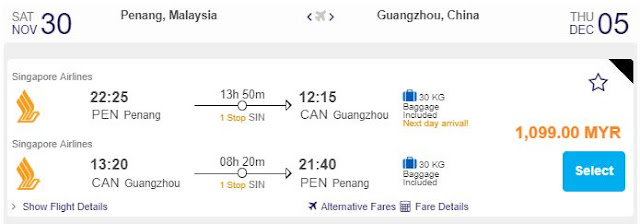 Penang飞往广州12月也有RM1099促销票!!