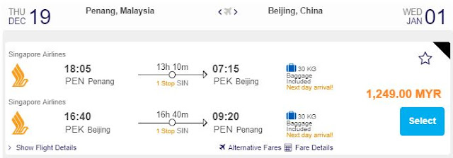 Penang飞往北京12月也有RM1249促销票!!