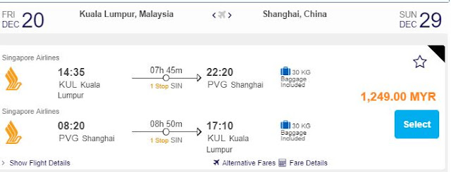 KL飞往上海12月也有RM1249促销票!!