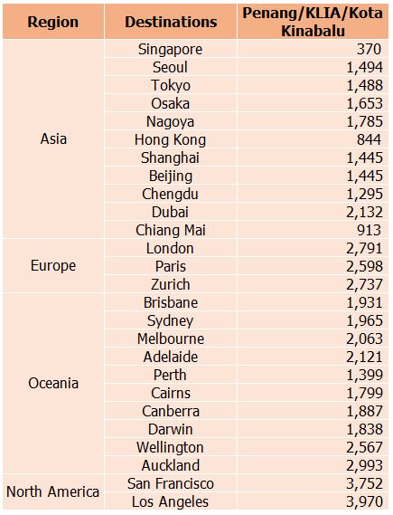起飞机场:KLIA/Penang/Kota Kinabalu