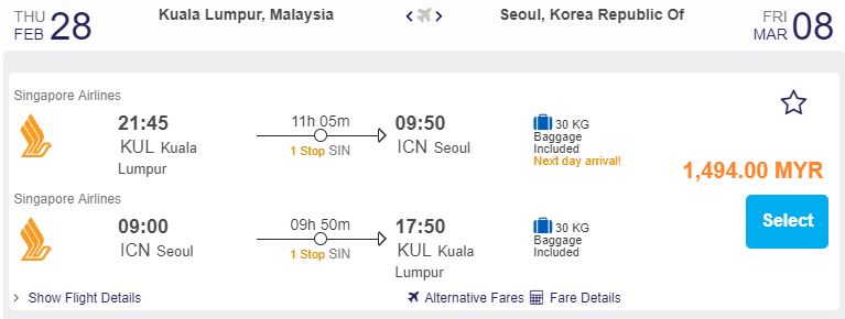 **除了直飞新加坡,其他地点都在新加坡转机**