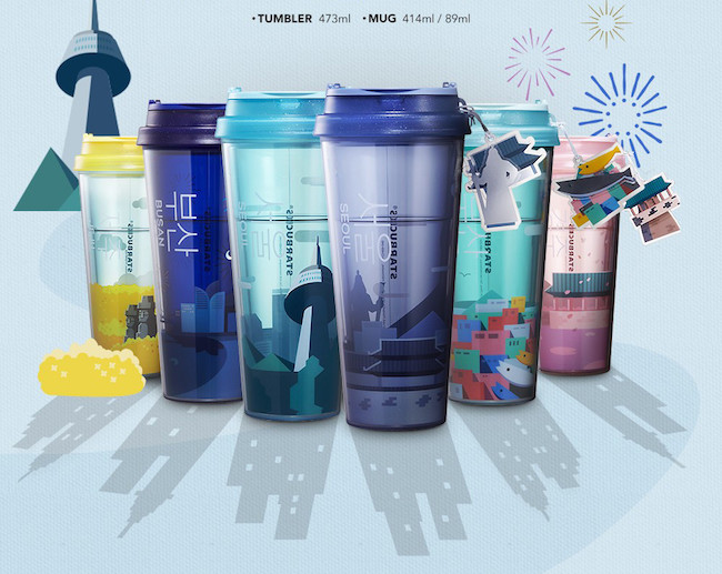 韩国星巴克城市系列共推出三款产品:携带水杯、陶瓷小杯子(89ml)及陶瓷大杯(414ml)。(照片来源:韩国星巴克)