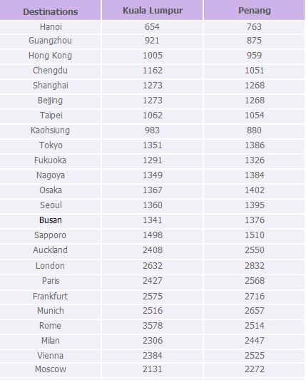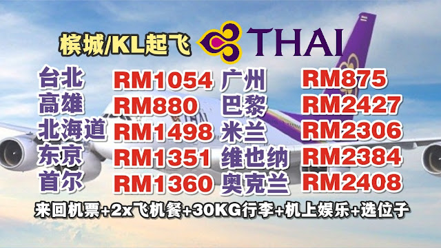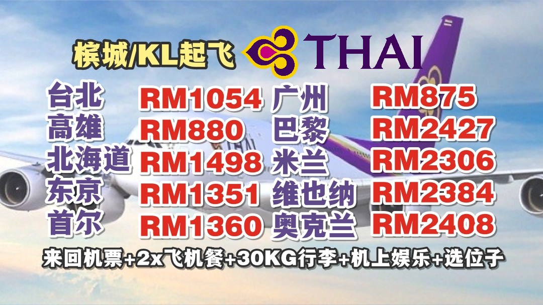 其他城市价格包含:来回机票、30KG行李、2x飞机餐、免费选位子、机上娱乐!!