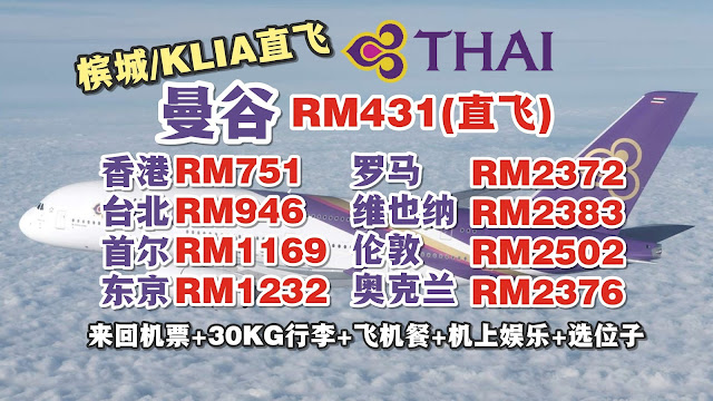 槟城直飞曼谷价格包含:来回机票、20KG行李、飞机餐、免费选位子!!